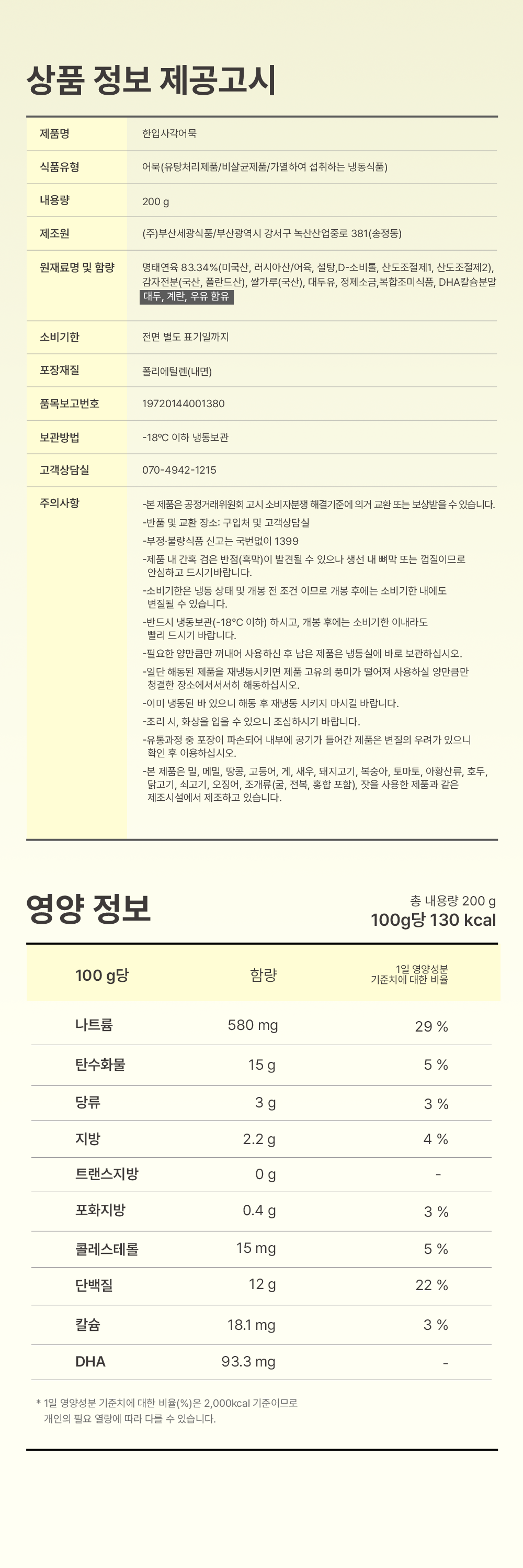 - 본 제품은 게, 계란, 밀, 돼지고기, 땅콩, 새우, 우유, 토마토, 오징어, 쇠고기를 사용한 제품과 같은 제조시설에서 제조하고 있습니다.