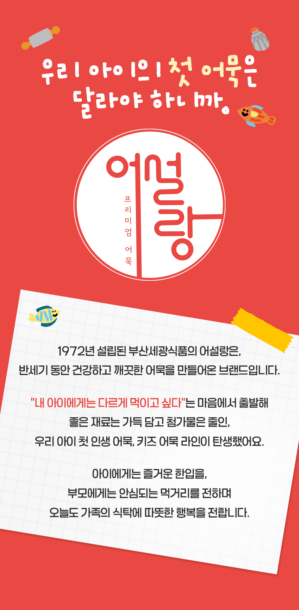 - 어설랑은 최고등급 단일 어육만을 사용하므로 원재료 확보 및 생산이 한정적입니다. (한정수량 생산)