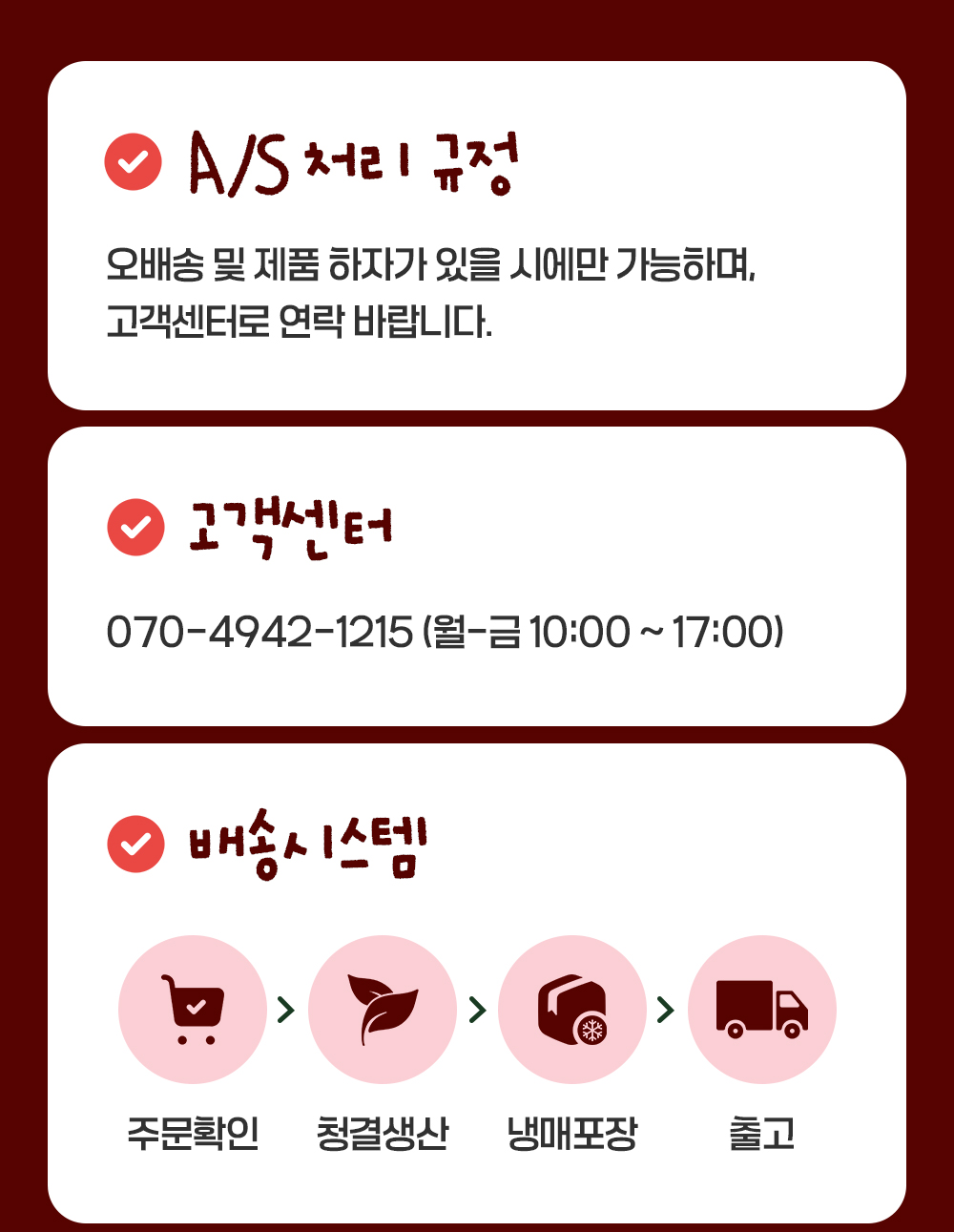 ※신선식품의 특성에 따른 정책이오니, 양해 바랍니다.