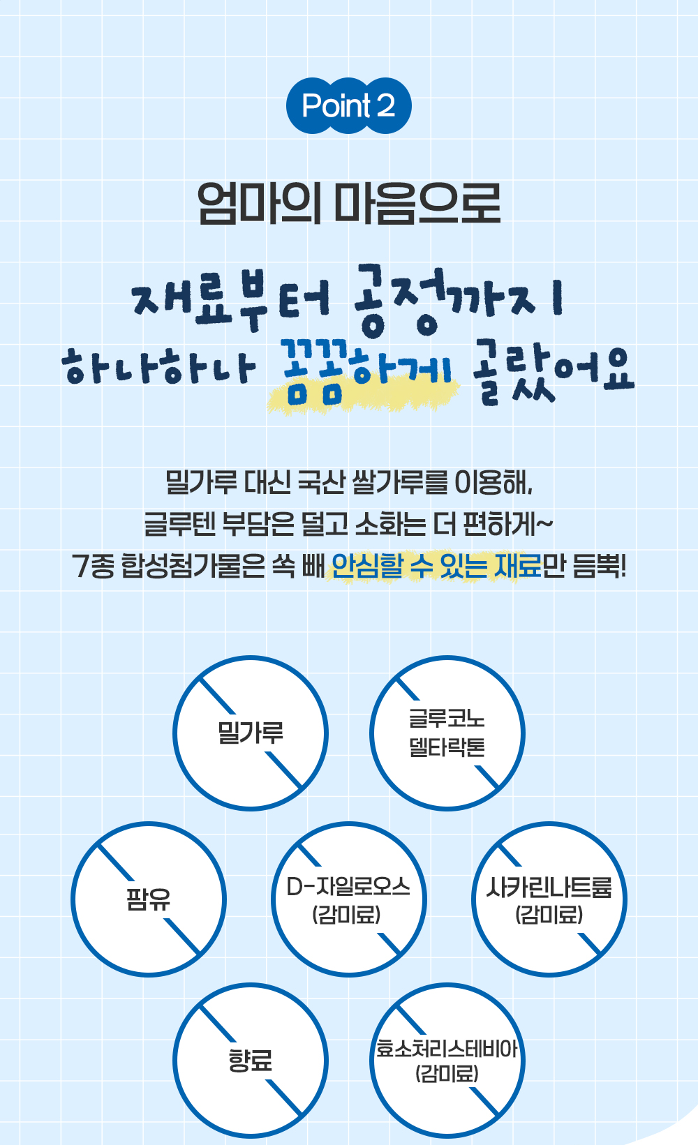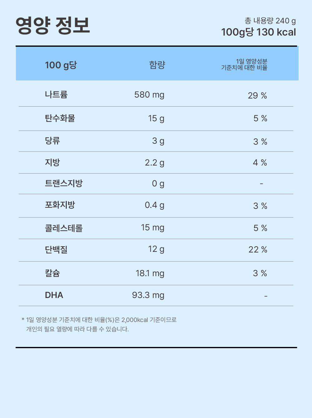- 본 제품은 게, 계란, 밀, 돼지고기, 땅콩, 새우, 우유, 토마토, 오징어, 쇠고기를 사용한 제품과 같은 제조시설에서 제조하고 있습니다.